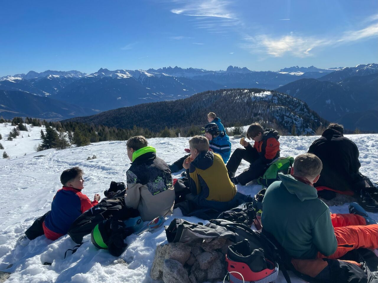 Auch in diesem Jahr konnte dieses Angebot wieder gemacht werden und 32 Schülerinnen und Schüler der 7. Klassen des Kollegs durften daran teilnehmen. Eine bunt gemischte Truppe machte sich am Samstag, 27. Januar 2024, in einem Doppeldeckerbus auf den weiten Weg. Vor ihnen lagen vier Skitage bei strahlend blauem Himmel, ein Ausflugstag wahlweise nach Brixen ins Erlebnisbad oder nach Bozen ins Ötzimuseum und viele weitere Erlebnisse.Was nun die persönlichen Höhepunkte waren, ist von Kind zu Kind verschieden. War es das gute Südtiroler Essen oder waren es doch eher die gemeinsamen Olympiaspiele? War der Spieleabend der absolute Renner oder lieber doch die Abschlussparty mit überragender Stimmung?