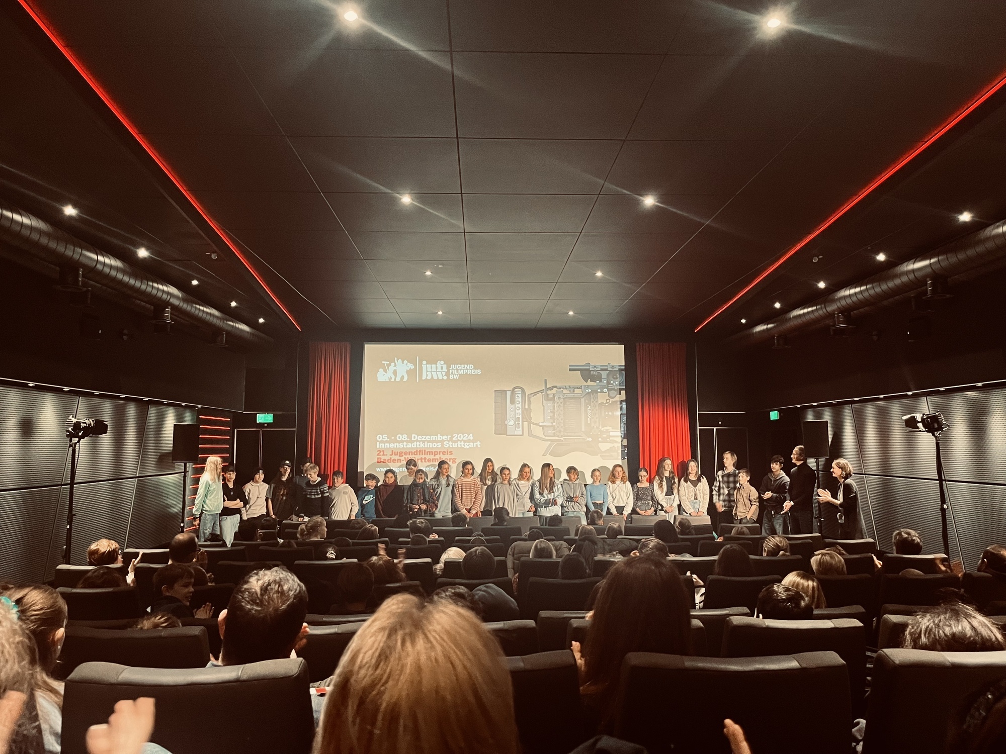 Der Film "Die Le(h)re Tasse" aus dem Jahre 2022 war beim diesjährigen Wettbewerb in Stuttgart neben sechs weiteren Filmen in der Kategorie "Beste Ensembleleistung" nominiert und wurde am Donnerstag, 5. Dezember 2024, im Cinema gezeigt.Im Anschluss an die Vorführung konnten die Schülerinnen und Schüler kompetent Auskunft über ihr Projekt geben. Obwohl seinerzeit noch Fünftklässler, haben die Schülerinnen und Schüler nicht nur die Rollen der Darsteller, sondern auch das Drehteam wie Regie, Kamera, Ton und Schnitt selbstständig ausgefüllt. Leider ist der Traum von einem ersten Platz nicht Erfüllung gegangen, weil es auch einen Film gab, der komplett ohne die Hilfe von Erwachsenen produziert wurde.