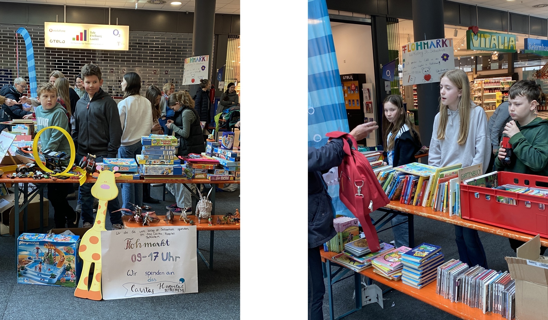 Am Samstag, 24.02.2024, hatten wir unser Sozialprojekt für dieses Schuljahr. Wir hatten uns lange überlegt, was wir machen wollten. Am Ende haben wir uns für einen Flohmarkt entschieden, die Idee dazu hatte Frau Stumböck. Das Geld, das wir verdienten, werden wir an ein Kinderhospital in Bethlehem spenden, denn die kleinen Kinder brauchen jede Hilfe!Am Samstag ging es dann endlich los. Es fing um 8 Uhr mit dem Aufbau an, um 9 Uhr begannen wir mit dem Verkauf. Es kamen viele Leute und wir konnten viel verkaufen. Einige Kinder blieben sogar bis zum Ende des Flohmarktes am Stand zum Verkaufen! Alle Kinder hatten jede Menge Spaß dabei! Um 17 Uhr war dann auch leider wieder Schluss.