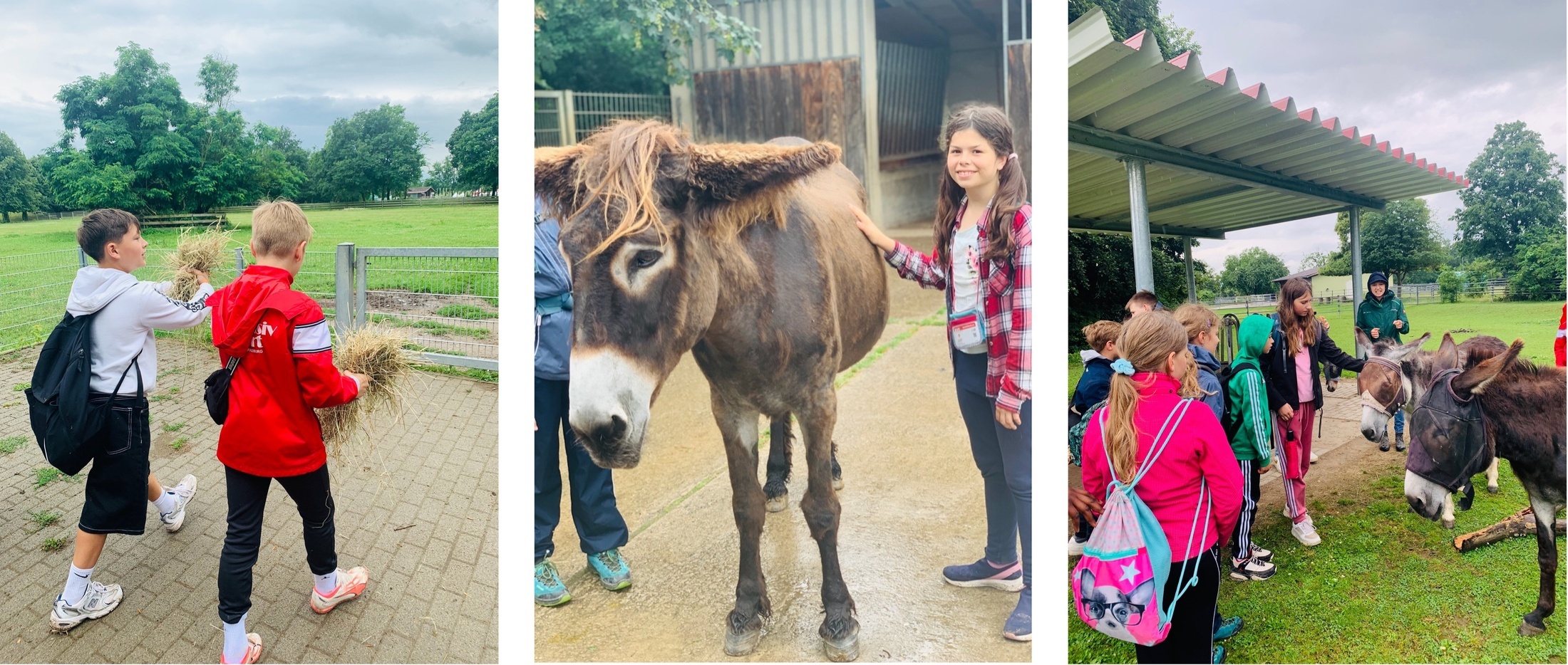 Nach der Spendenübergabe vereinbarten wir einen Termin auf dem Mundenhof. Die Klasse konnte bei einer Eselfütterung live dabei sein und lernte viel über den Alltag der Tiere, aber auch über den der Tierpflegerinnen und -pfleger.Es war schön zu sehen, mit wie viel Freude und Herzblut die Arbeit auf dem Mundenhof täglich abläuft, und so freuten wir uns, dass wir einen Beitrag dazu leisten konnten.