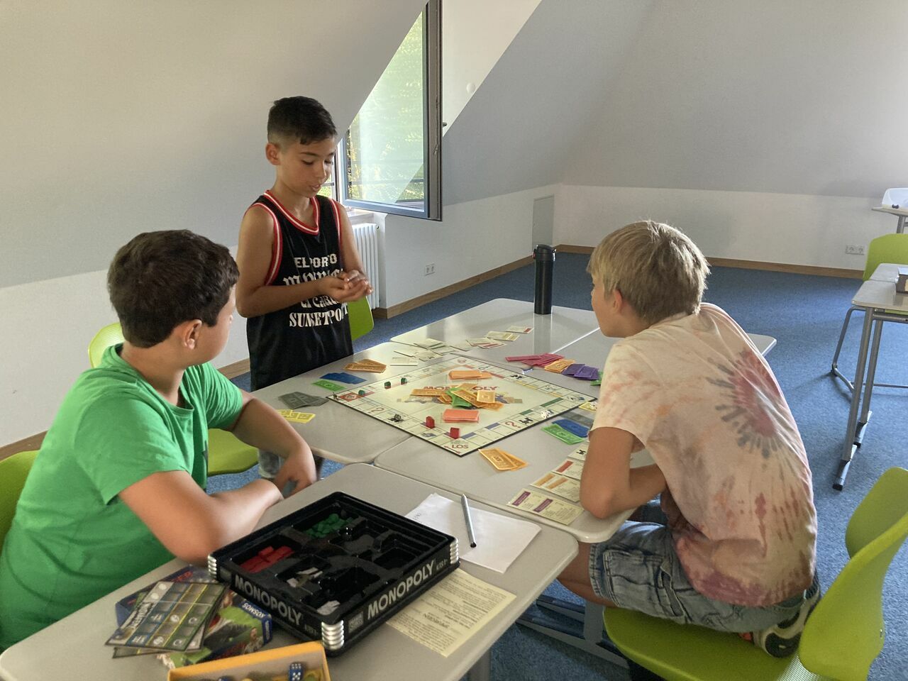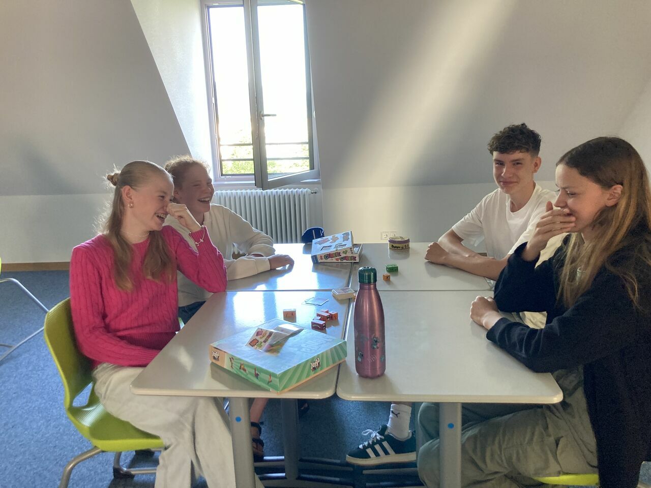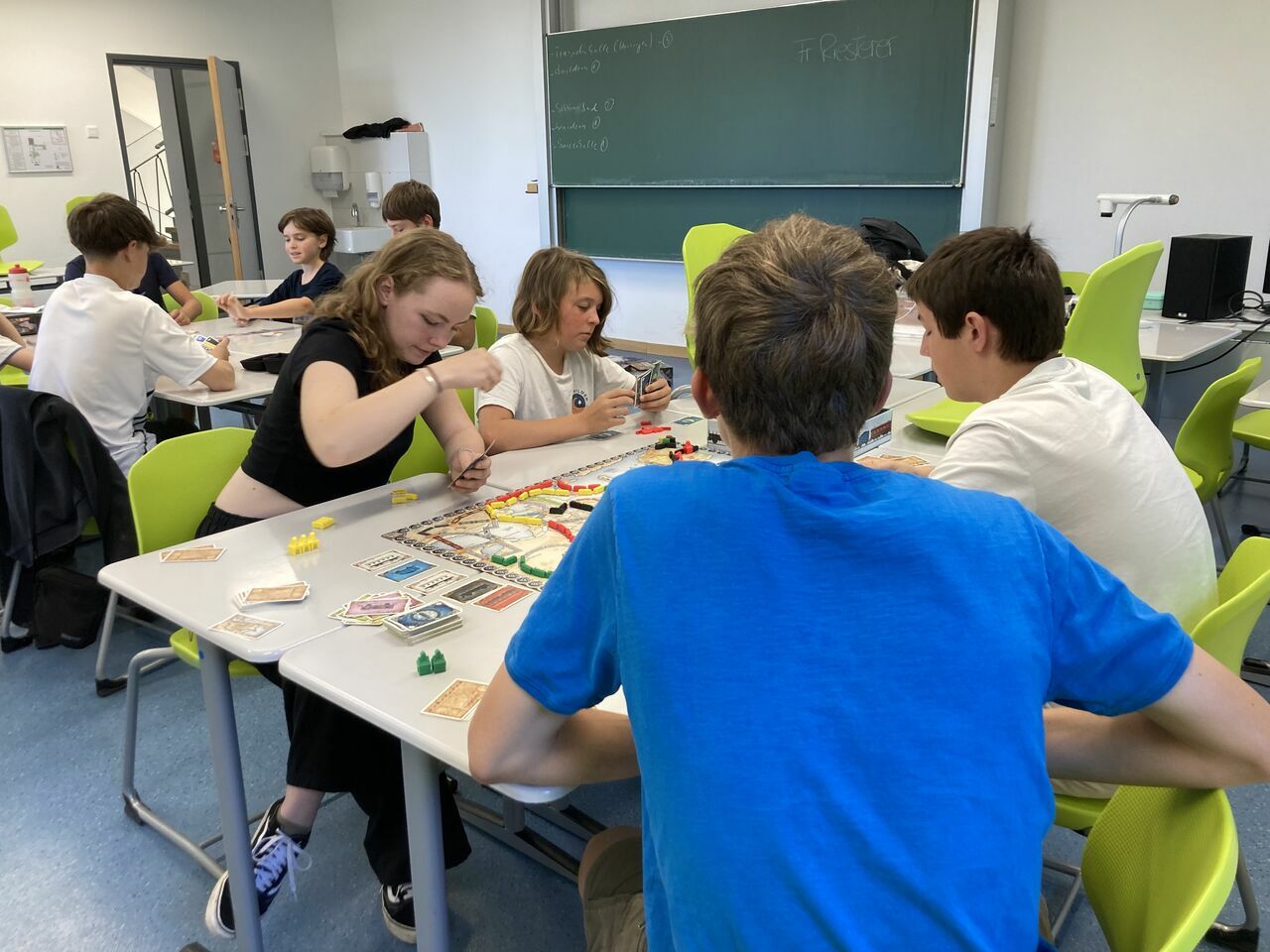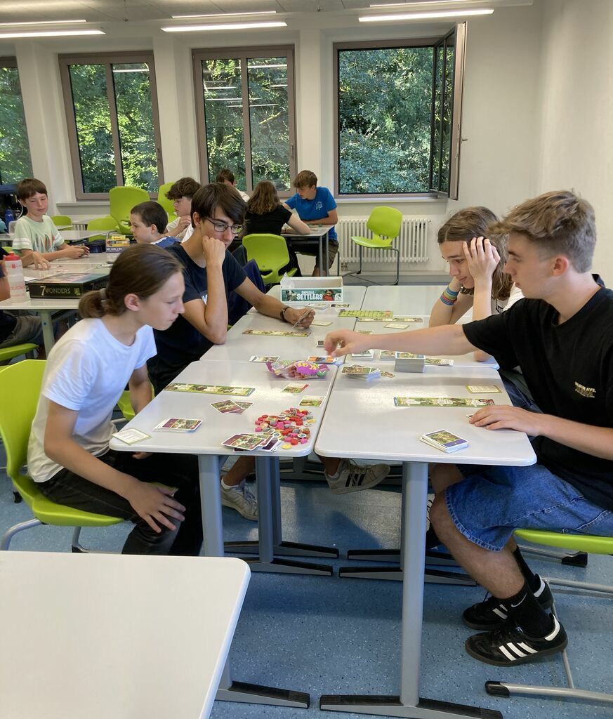 Bei den Projekttagen am 18. und 19. Juli war ich im Projekt „Brettspiele – vom Anfänger bis zum Experten“ und es war super! Am ersten Tag haben wir uns in zwei Gruppen aufgeteilt, die „Fortgeschrittenen-Gruppe“ und die „Basis-Gruppe“. Ich war in der „Fortgeschrittenen-Gruppe“ und habe dort mit drei anderen Imperial Settlers, ein Deck-Building-Spiel, gespielt. Der Rest der Gruppe hat zuerst Zug um Zug und 7 Wonders gespielt und sich danach in mehrere kleinere Gruppen aufgeteilt.