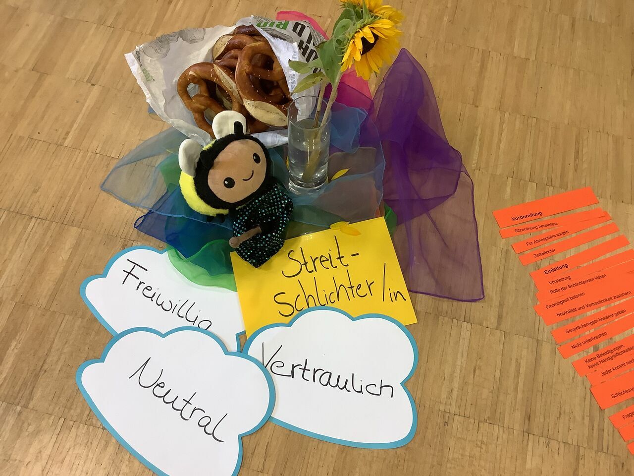 An drei Tagen wurden zusammen mit Frau Jasler-Davis intensiv Konfliktlösungsstrategien erprobt, Grundlagen der Mediation erarbeitet und an einem Begleitkonzept für die 5er gefeilt. Unsere Patenteams aus der Schülerschaft sind bereit, mit den neuen 5ern den Sprung ins Unbekannte zu wagen und bei kleinen und größeren Konflikten wieder für gute Stimmung zu sorgen. Das neue Schuljahr kann kommen!