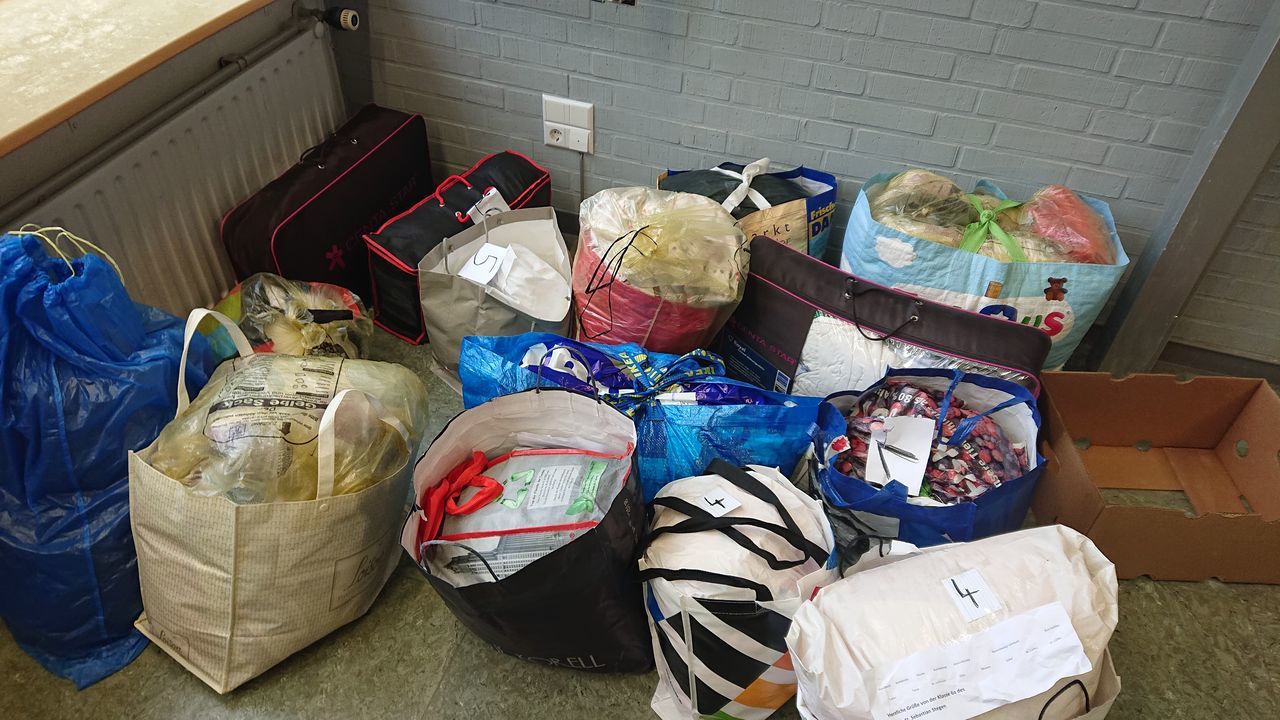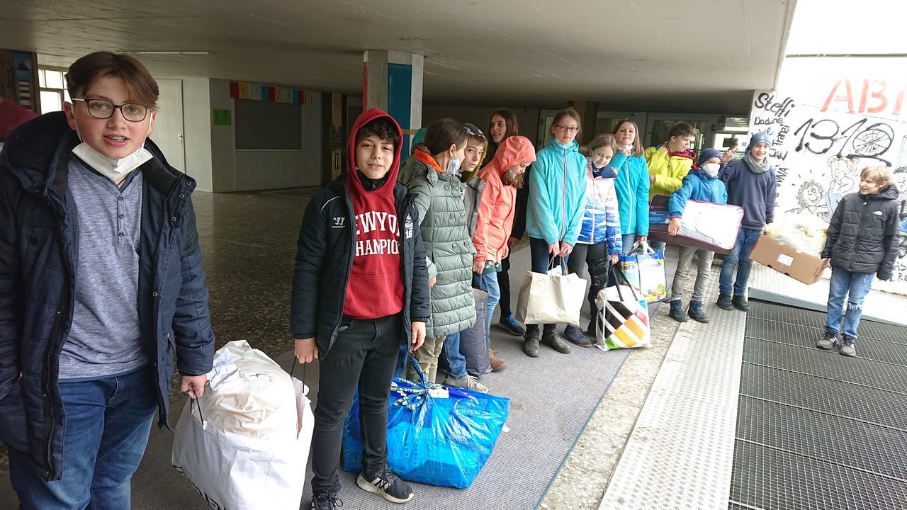 Von Ende März bis Anfang April fand bei der 6a, meiner Klasse, ein Sozialprojekt statt, bei dem wir ukrainischen Flüchtlingen geholfen haben. Das kam so: Unsere Co-Klassenlehrerin, Frau Aßmann, hat eine Freundin, die bei der Uni-Klinik arbeitet. Diese erzählte ihr, dass ukrainische Krankenschwestern, manche auch mit Kindern, in Erstaufnahmestellen angekommen seien. Als Angestellte kämen sie im Personalwohnheim der Klinik unter. Dort gebe es eine Gemeinschaftsküche, einen Schrank, ein Bett mit Matratze, einen Tisch und eine Kommode. Bettwäsche, Besteck, Geschirr, Handtücher usw. würde jedoch komplett fehlen. Also war Frau Aßmanns Idee: Wenn wir so eine Art „Starterpaket“ mit den genannten Dingen packen könnten, und von denen sogar mehrere, würde sich die Lage sicher bessern. Frau Aßmann unterbreitete uns ihre Idee und wir waren alle begeistert. In den folgenden Stunden bereiteten wir alles vor: Auf Moodle, unserer Lernplattform, war eine Tabelle, in die jeder eintragen konnte, was er hatte. Auch Freunde und Verwandte wurden nach Alltagsgegenständen gefragt.